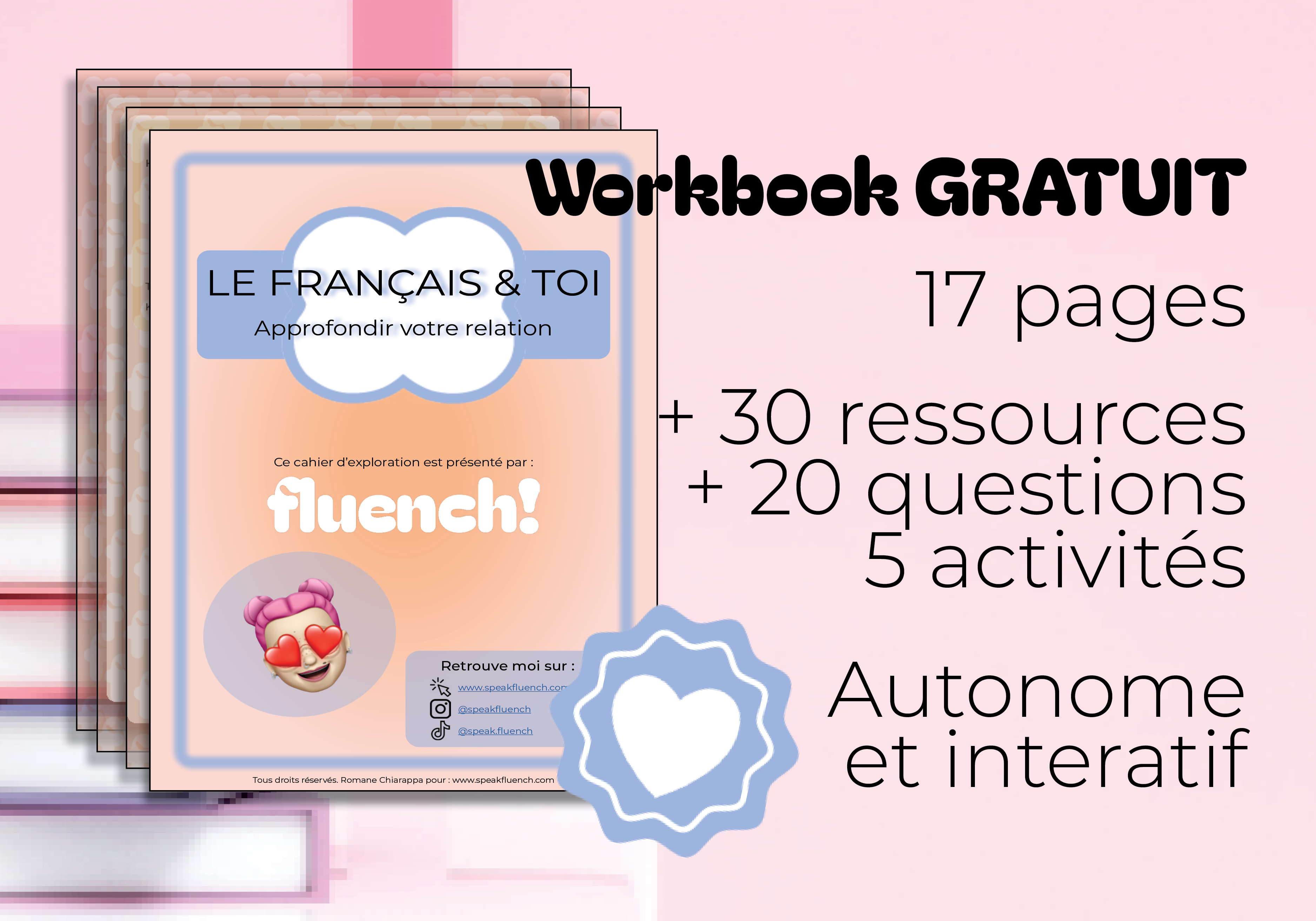 Un cahier d'exercices interactif gratuit pour explorer et renforcer ta relation avec le français - adapté aux débutants et aux locuteurs avancés.