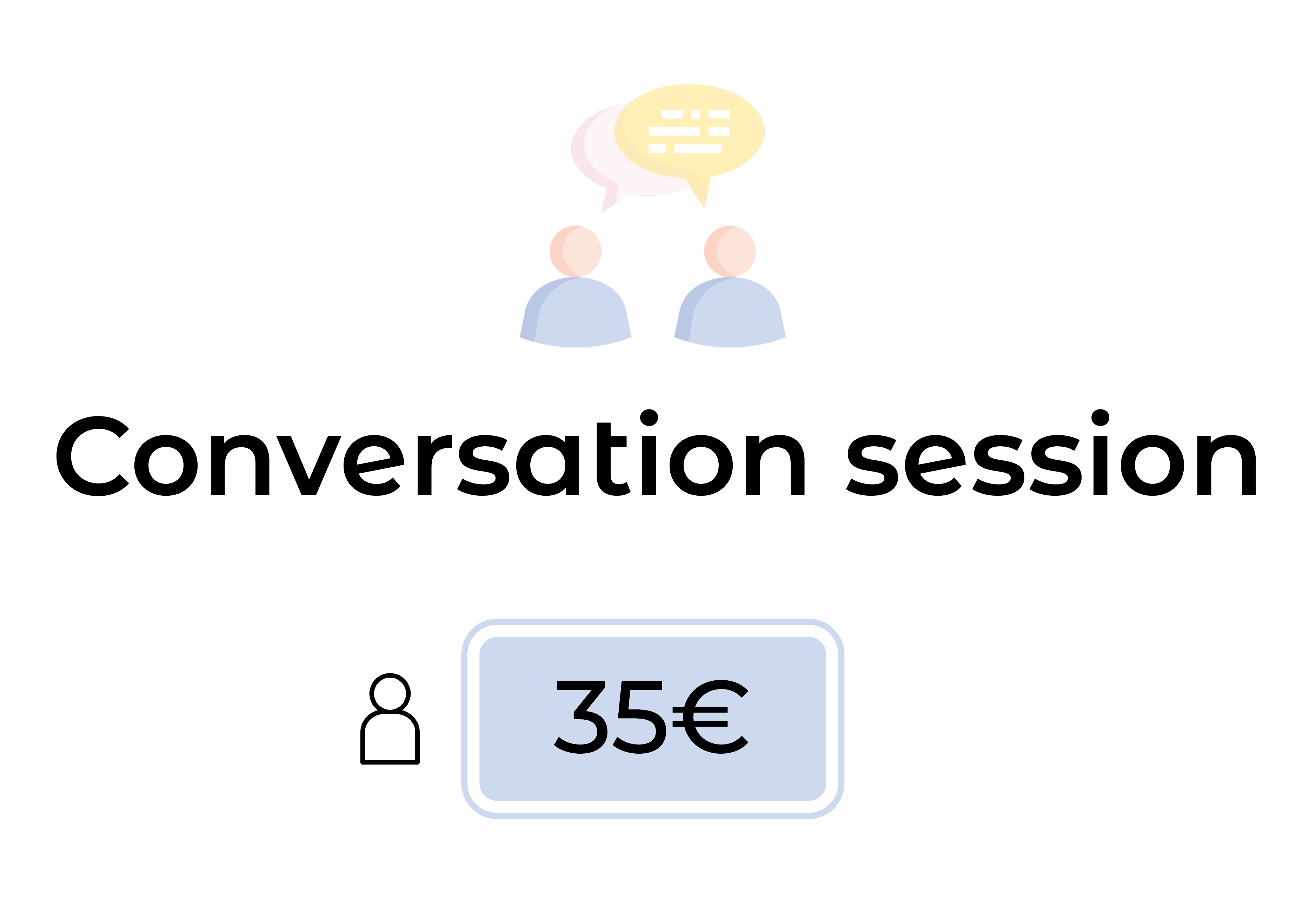 Conversation sessions are 45-minute online meetings designed to improve your French speaking skills.